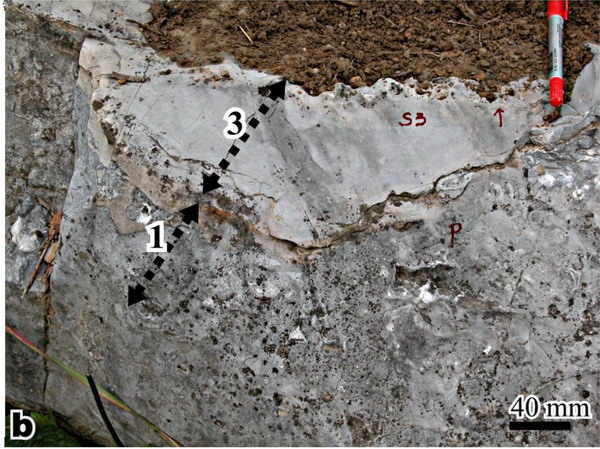 图1 二叠系生物礁顶部的剥蚀面及其上的泥晶沉积物