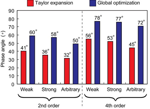 图3. 强各向异性情形下四阶算子优化前后相位误差曲线对比图