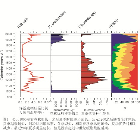 图1 二龙湾玛珥湖硅藻组合变化揭示的过去1000年来温度与季节变化