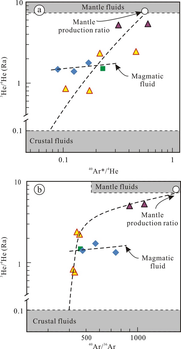 图2 黄铁矿He-Ar同位素组成