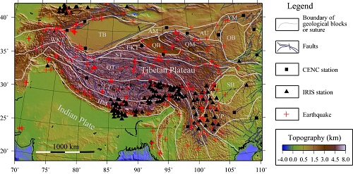 青藏高原是由印度板块与欧亚板块碰撞和挤压造成的。在形成过程中,高原受到整体抬升,内部物质在挤压和重力的双重作用下从内部向四周流动。基于这一设想提出的下地壳流模型能够较好地解释青藏高原的演化和地表形变特征,并得到一些地质学和地球物理学观测资料的支持。然而,由于很难对下地壳中的动力学过程进行直接观测,对其中物质流动的分布仍未得到比较一致的认识。高原的形成也伴随着强烈的热运动。热过程以及由此产生的温度变化会改变材料的本构关系,影响到地质块体的流变学特性。这一变化不仅支配着下地壳流动的模式,同时也会影响地震波速度和衰减的变化。因此,通过研究地壳和上地幔中地震波的衰减和速度变化有可能为地壳流的分布形态提供一定的约束。