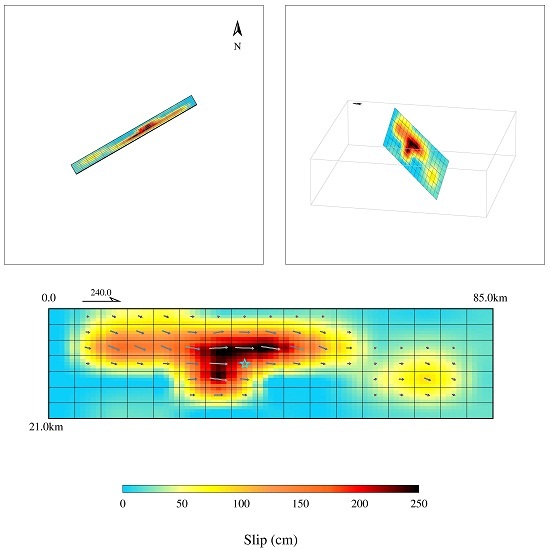 Fig. 4 The map shows the projection of slip distribution on the ground