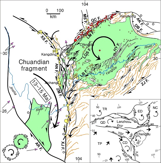 该研究成果近期在线刊登在国际构造地质学权威期刊TECTONICSWang et al. Block rotation: Tectonic response of the Sichuan basin to the southeastward growth of the Tibetan plateau along the Xianshuihe-Xiaojiang fault. Tectonics, 2014, doi:10.1002/2013TC003337