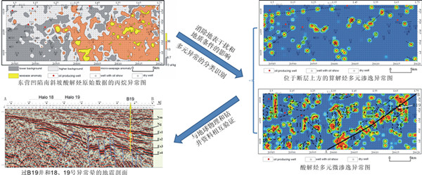 800彩票含油气盆地流体动力学学科组张刘平研究员等人针对上述存在的问题提出了新的概念和方法,并取得了良好的应用效果。他们首先对油气异常开展研究,发现了多种形成机制和相应的多种类型的油气异常,对于不同类型的油气异常,采用不同的预测方式。他们发现,不分异常类型直接进行预测的做法会造成异常解释具有多解性,同时也是导致预测失败的重要原因之一。为减少多解性,他们建立微渗逸(低强度、垂直)和渗逸(高强度、旁侧)两类油气异常的新概念和相应的预测方法。此外,提取油气异常信号的重要环节是异常下限的确定。传统的异常下限确定公式实际上仅仅是线性变换,需要人为确定异常下限值,不能区分不同类型的异常。他们从油气异常新概念出发,重新定义异常下限和不同类型异常间的界限,并通过严格的数学推导建立了异常下限和不同类型异常间界限的理论公式。进而,运用统计学、运筹学、分形几何和人工神经网络等多种方法,并且创建和应用逻辑乘聚类分析这一新的数学方法,最终建立起分类识别油气异常的新方法。针对地表干扰和地质条件对油气异常的影响造成预测成功率低甚至不能预测这一难题,他们通过研究机理,建立理论模型,进行小波分析等处理手段建立起消除干扰和影响的新方法。