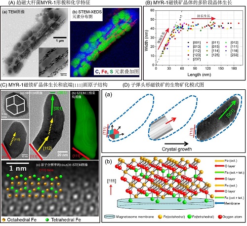 图1:趋磁大杆菌MYR-1Candidatus Magnetobacterium casensis及其子弹头形磁小体的生物矿化机制