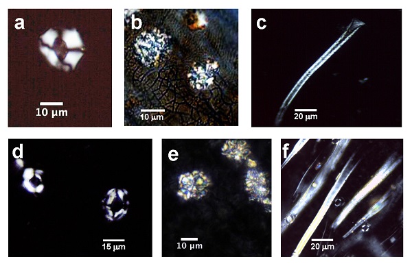 图2 考古植物样品中分析出的植钙体类型组合(a,b,c)与现代茶叶植钙体(d,e,f)类型组合对比