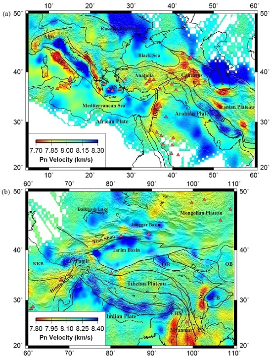由新特提斯洋闭合导致非洲板块、阿拉伯板块、印度板块与欧亚大陆碰撞而形成的特提斯造山带是当今全球最大的陆陆碰撞造山带,对该构造带深部结构及动力学过程的研究也是地球科学界的热点。地震层析成像是探测地球内部结构直接有效的手段,利用地震波路径集中于上地幔顶部的Pn波这一优势震相可以获得地幔顶部高分辨率的成像结果,然而传统Pn成像方法在壳幔结构复杂、莫霍面起伏较大的区域反演结果存在系统性误差。