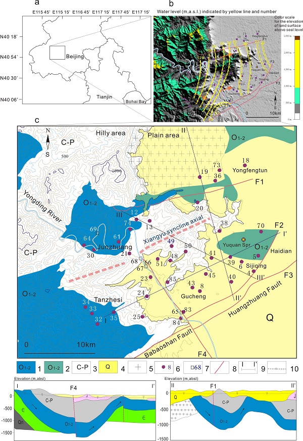 北京西山岩溶水水资源丰富,在城市供水中占有重要地位,含水层的特点是厚覆盖、大埋深(埋深可达2000米)。无论是作为地下水储蓄库,还是改善西部山区及山前平原区水文生态环境都要求准确、精细的刻画岩溶水流系统。该项工作对北京西山岩溶水系统利用保护,水生态环境恢复具有一定的指导意义。