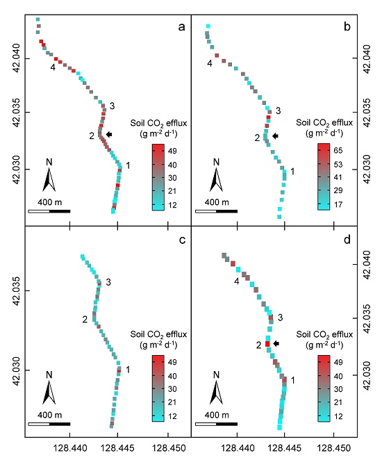 图2 圆池土壤气CO2释放通量时空分布图
