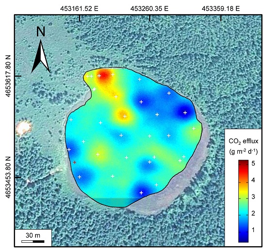 图3 圆池玛珥湖CO2释放通量空间分布图