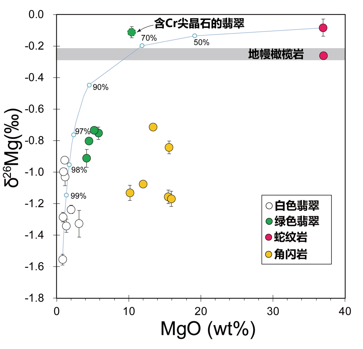 图1 缅甸翡翠及其围岩的Mg同位素特征