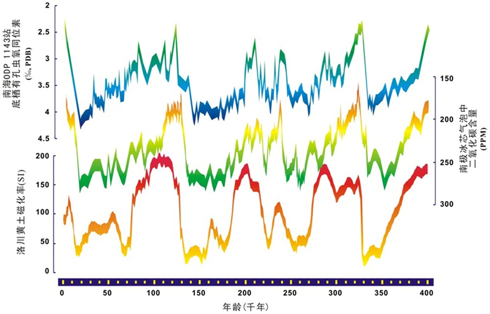 图1  深海沉积、冰芯、黄土记录的冰期-间冰期旋回(田军,2010