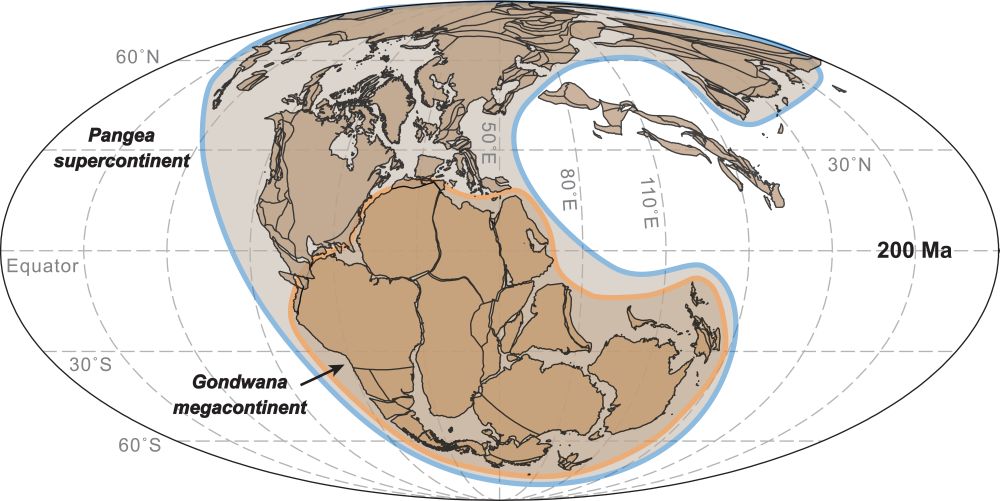 图1 潘吉亚超大陆和冈瓦纳巨大陆的古地理关系图