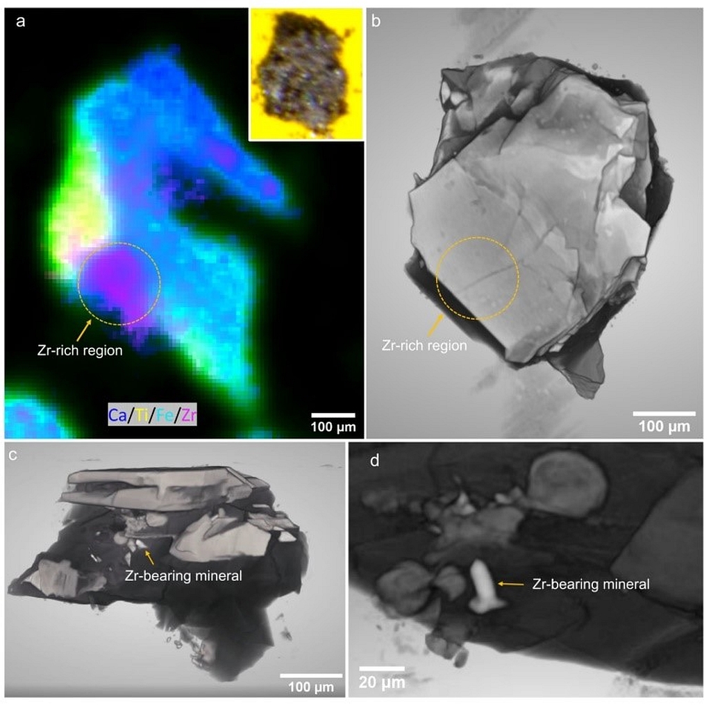 针对上述问题,经过多个课题组的联合攻关,研究人员最终建立了两套可行性方案,用于嫦娥五号月壤样品中富锆(Zr)颗粒的快速筛选和目标颗粒中含锆矿物的精准定位。