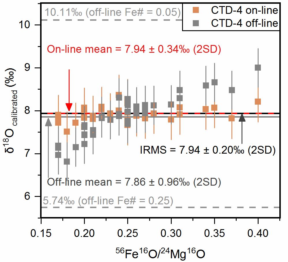 3 CTD-4白云石在线和离线方法校正观察到的δ18O变化范围