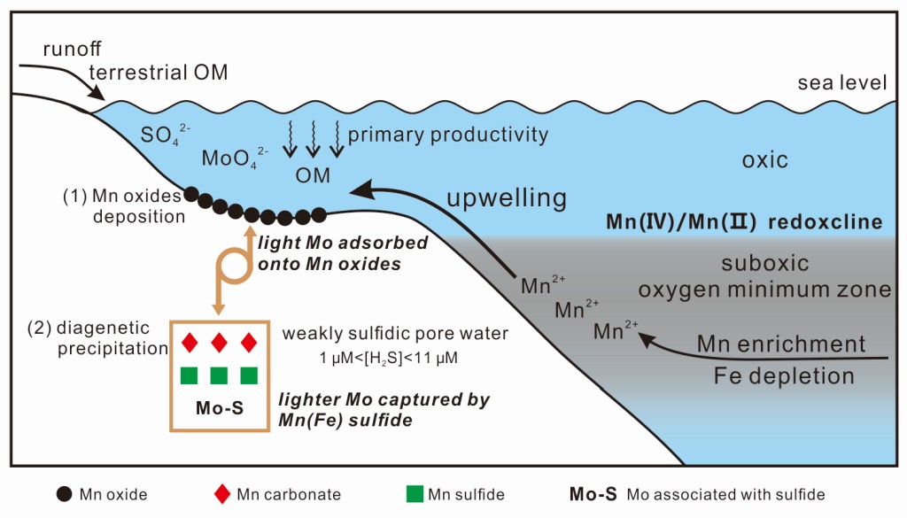 图3 昭苏锰矿成矿模式及沉积-成岩过程中的Mo同位素分馏过程