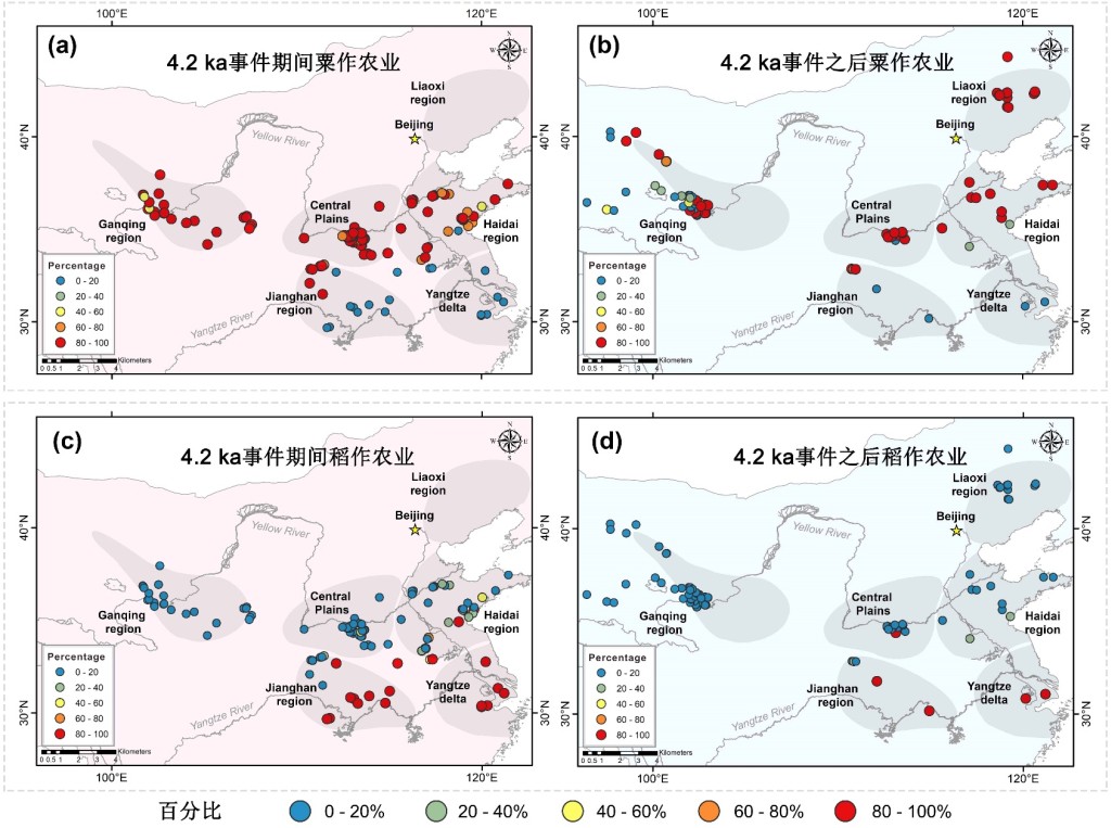 然而,4.2ka寒冷事件,并没有造成我国中原文化的中断,中华文明成为唯一延续至今、未曾间断的古代文明。如何解释中华文明没有中断的原因,前人从我国地理环境格局、旱作-稻作农业的互补等方面,提出了许多重要的观点,然而,关于我国史前文化、人口和旱作-稻作农业兴衰的详细时空证据、演化模式及其与4.2 ka气候环境事件的关系,目前仍然存在许多争议。