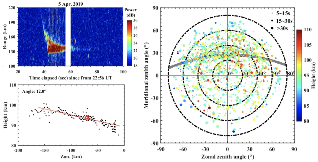 团队成员利用MIOS观测并将研发的方法应用于子午工程全天空流星雷达,在流星体及流星等离子体尾迹的产生与演变全过程、流星雨流星普查和一类新的流星等离子体尾迹非场向不均匀体等研究中取得了初步进展。