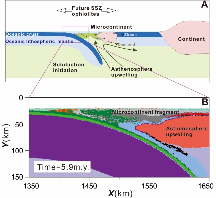 4 微陆块诱导初始俯冲模型解释SSZ型蛇绿岩中地壳物质和超高压矿物的来源
