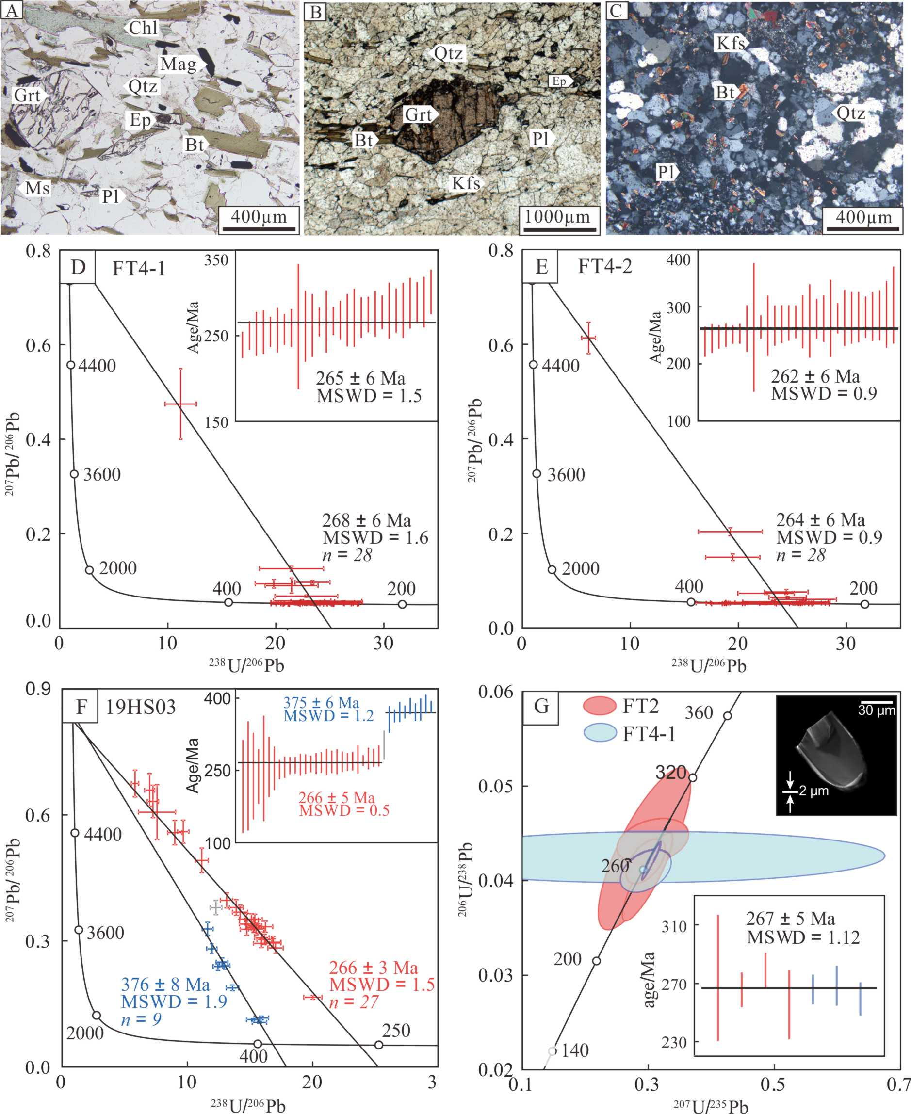图3 北淮阳带变质岩的岩相特征和金红石(D和E)、榍石(F)以及未抛光锆石(G)的SIMS U-Pb定年结果