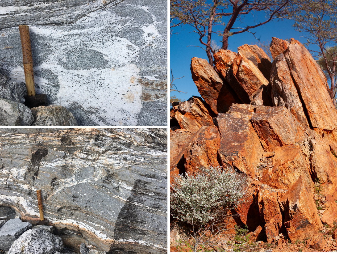 图2 “S型”花岗岩野外照片示意图,喜马拉雅山脉(左)和西澳大利亚Jack Hills锆石发现地(右)