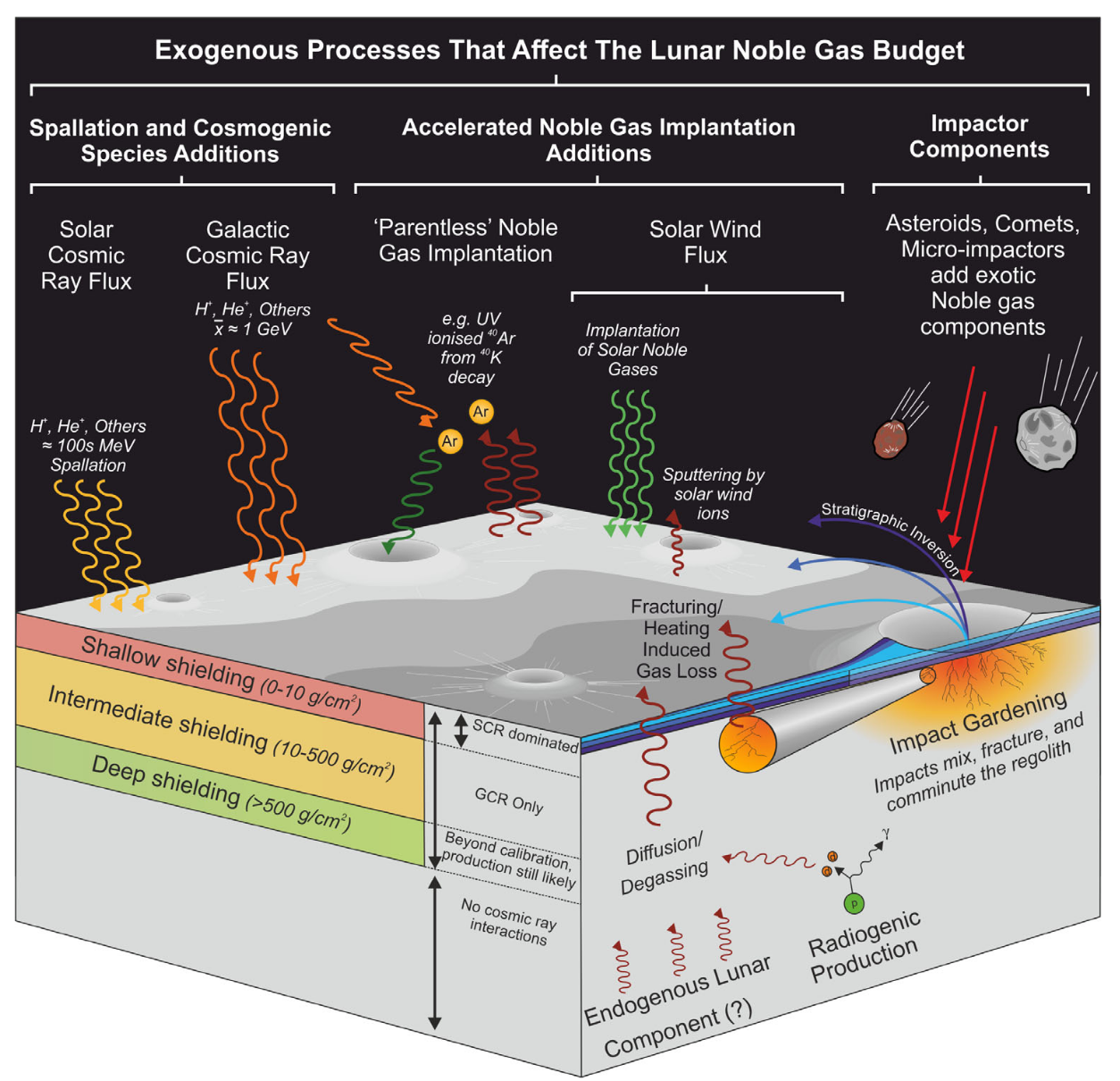 图1 影响月球上稀有气体分布和组成的示意图(Nottingham et al., 2022)