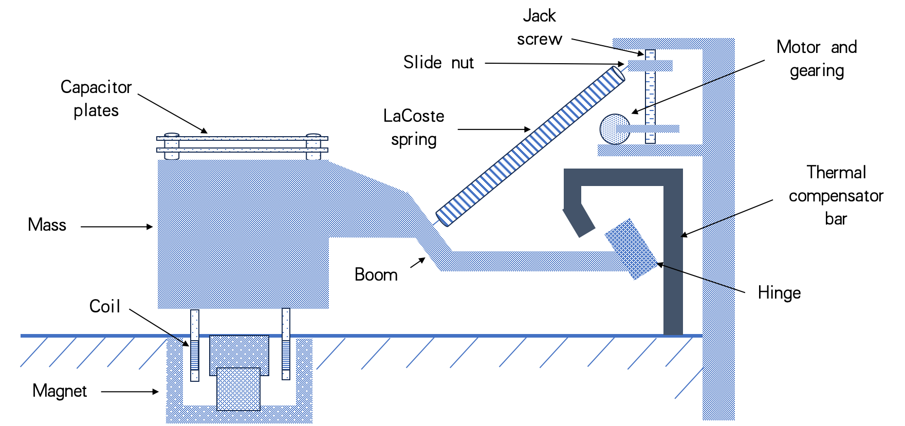 图3 阿波罗PSE垂直地震仪的内部结构(改自Bendix, 1968)。阿波罗月震仪采用的LaCoste弹簧在每摄氏度的温度变化下存在4%的热漂移。热补偿棒的作用是减轻弹簧热漂移的影响