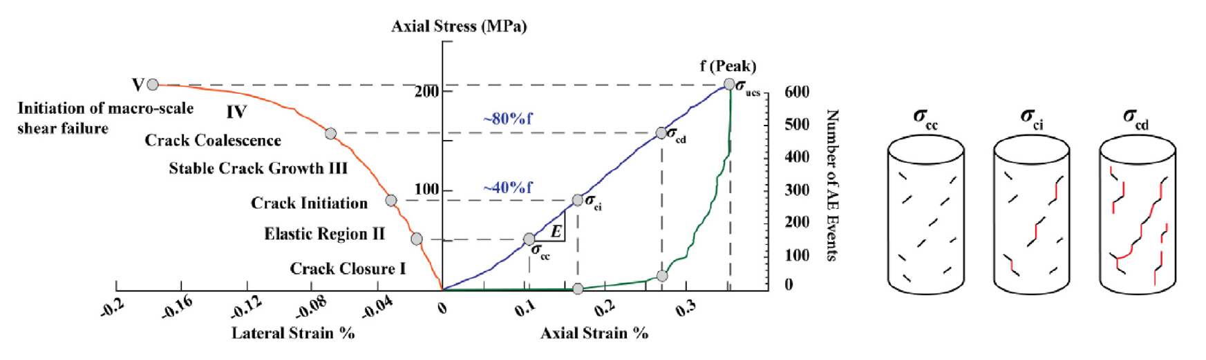 随着地下工程向活动构造区和深部进军,地应力逐渐增高,工程开挖引起应力重分布在开挖面附近形成强烈应力集中,容易引发坚硬围岩中储存应变能的突然释放,造成片帮、岩爆等脆性破坏,给高应力地区地下工程安全建设运维带来挑战。经典岩石力学常常基于实验室测得的单轴抗压强度预测岩石脆性破坏时的围岩应力,即岩石脆性破坏预测的静载荷理论。然而多个地下工程原位测试数据表明,岩石发生脆性破坏时围岩应力都显著低于实验室测量的单轴抗压强度,静载荷理论并不能适用于岩石脆性破坏的预测。因此,岩石脆性破坏预测成为近年来岩体工程地质力学研究的前沿热点与难点。