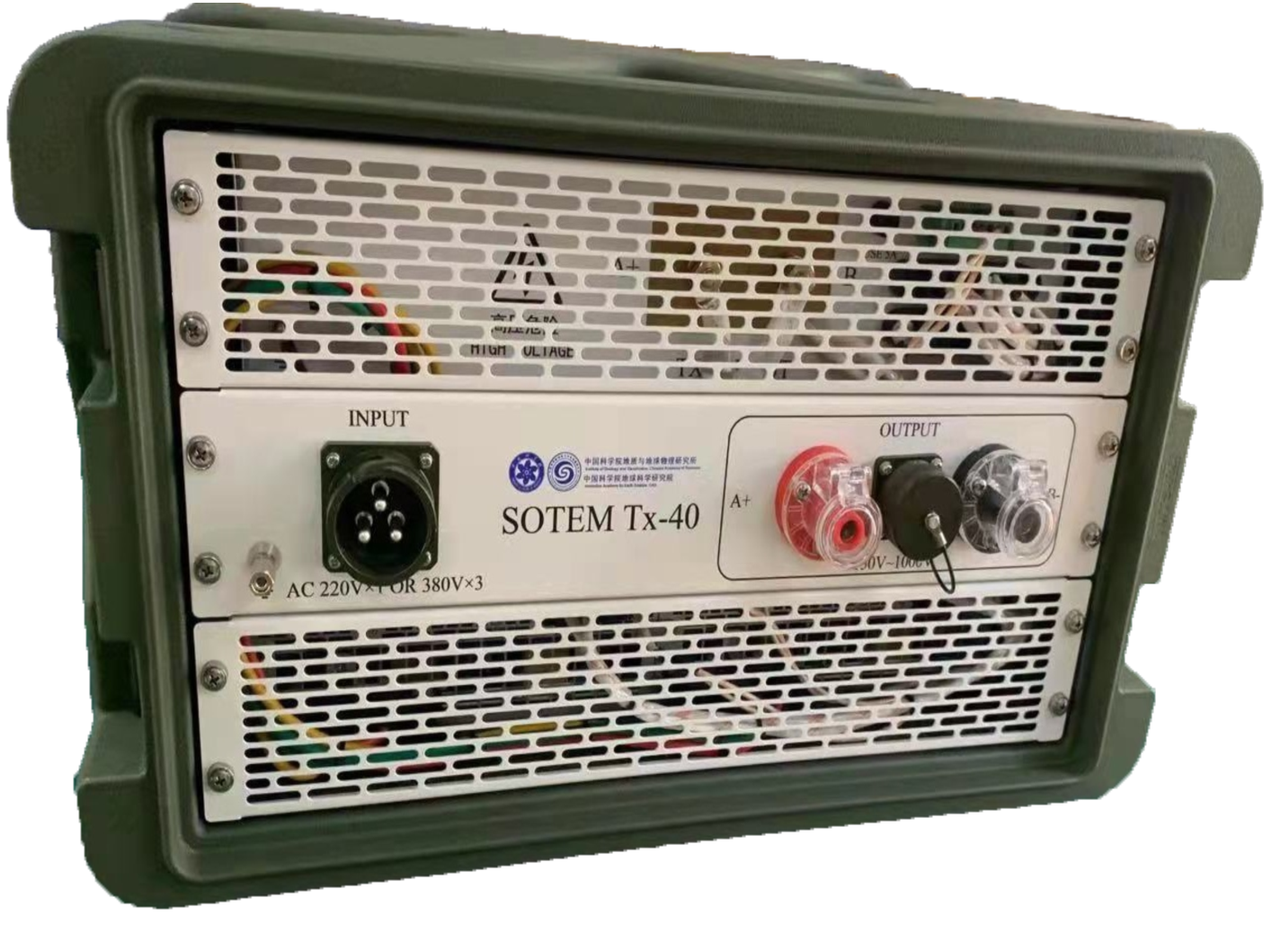 为了满足短偏移观测的宽频带和高信噪比需求,他们研发了大功率、高分辨率的大带宽勘探设备(图2)。在发射机方面,攻克基于电流反馈的超高压恒压钳位关键技术,实现电流快速关断,从而提升发射信号带宽。在传感器方面,攻克基于管级并联的混合放大技术及自适应可变阻尼技术:通过管级并联混合方法技术,压制高频区的电流噪声;通过自适应可变阻尼技术,在不同的工作场景下,灵活扩展传感器的线性带宽。与传统的电磁法设备相比,SOTEM 设备的最大输出功率更高,发射波形更加灵活,关断时间更短,传感器噪声水平更低,线性带宽更宽,接收机采样率更高,动态范围更大,使得 SOTEM 设备在探测性能上具有显著优势。