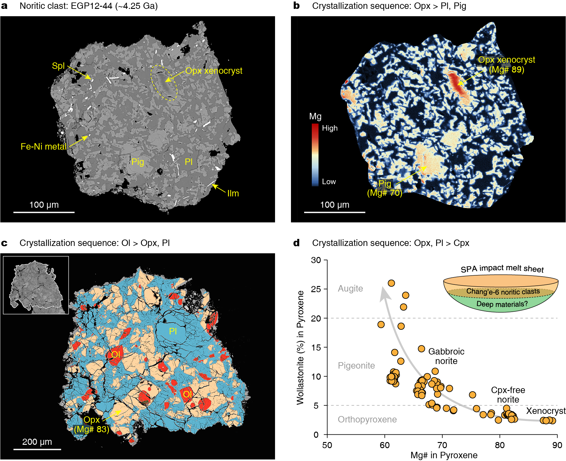 最近,800彩票月球研究团队在嫦娥六号月壤中识别出SPA撞击熔融形成的苏长岩,测得SPA撞击发生在42.5亿年前。这类苏长岩是SPA撞击岩浆池晚期结晶的产物,成为解锁SPA撞击密码的“钥匙”:通过分析苏长岩,可以获取岩浆池的结晶序列和成分特征,进而反向推演出撞击前月幔的“原始配方”,为破解月幔难题提供了独特的样品支撑。
