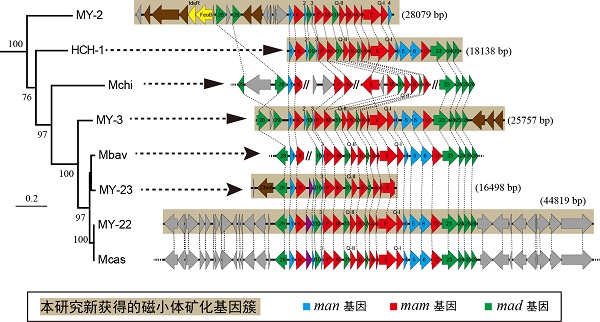 趋磁细菌是一类能够感应地磁场并沿磁力线方向运动的微生物。它们的显著特点是在细胞内合成纳米级的铁磁性颗粒,称为磁小体;磁小体一般呈链状排列,像指南针一样帮助趋磁细菌感应地磁场。自然界趋磁细菌广泛分布于湖泊、海洋等各种水体环境中,在铁、硫、碳、氮等关...