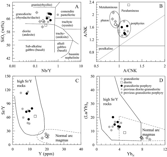 大型斑岩铜矿常与俯冲背景下的高氧化性(氧逸度通常≥NNO+1)岩浆活动有关,且成矿岩石地球化学组成常表现出埃达克质特征(高Sr、低Y及高Sr/Y),明显区别于非成矿岩石-正常弧岩浆(低Sr、高Y及低Sr/Y特征)。因此,埃达克质岩石被认为更有利于形成大型斑岩铜矿...
