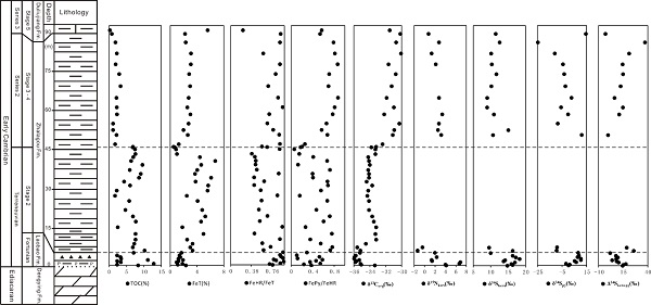 寒武纪早期,地球生物出现急剧的演变,埃迪卡拉晚期软体生物消失,而寒武纪生物出现了大爆发。最可能促使大生物演化的内在因素是氧气。深海氧化程度的增强被认为导致了大动物的演化。   以前主要利用铁组分和硫同位素组成对过渡时期扬子海洋化学进行研究,但铁组分和硫...
