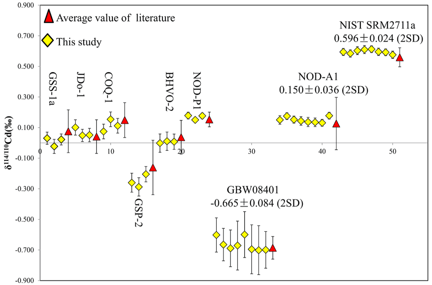 镉(Cd)具有挥发性和亲硫性,也是具有强生态毒性的元素。Cd的迁移、富集和循环机制,一直以来都受到地球科学、生态及环境科学的广泛关注。随着分析技术的不断发展,δ114Cd分析精度已达到优于0.05‰的水平,极大地推动了Cd同位素在地球化学、矿床成因、古海洋生产力...