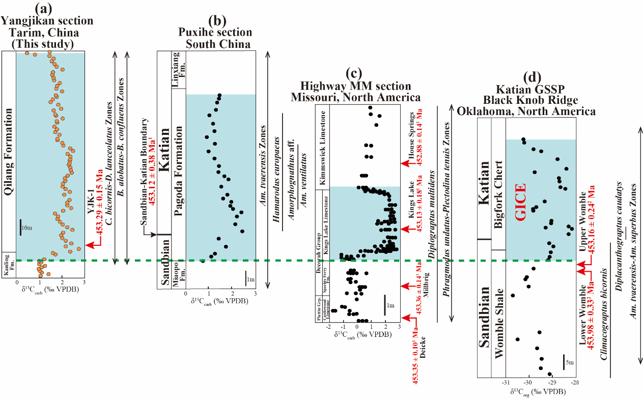 晚奥陶世是地质历史上一个关键的气候转折期,其环境变迁对全球生态系统和生物演化进程具有深远影响。广泛记录于该时期海相地层中的Guttenberg碳同位素正漂移(GICE)事件(偏移幅度可达~3‰),是研究晚奥陶世气候变化的重要载体。然而,受全球古生物地理区系分异及...