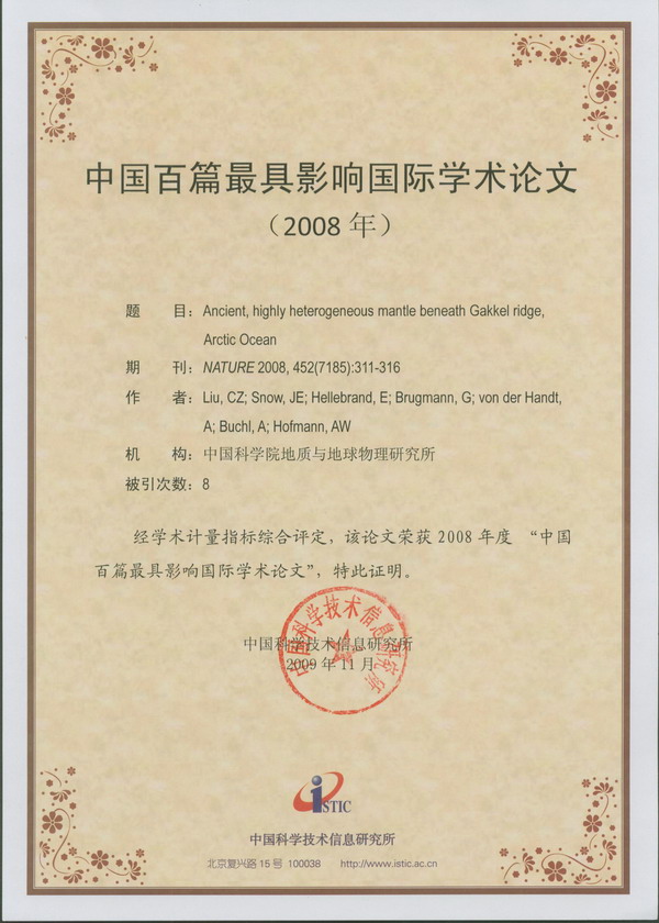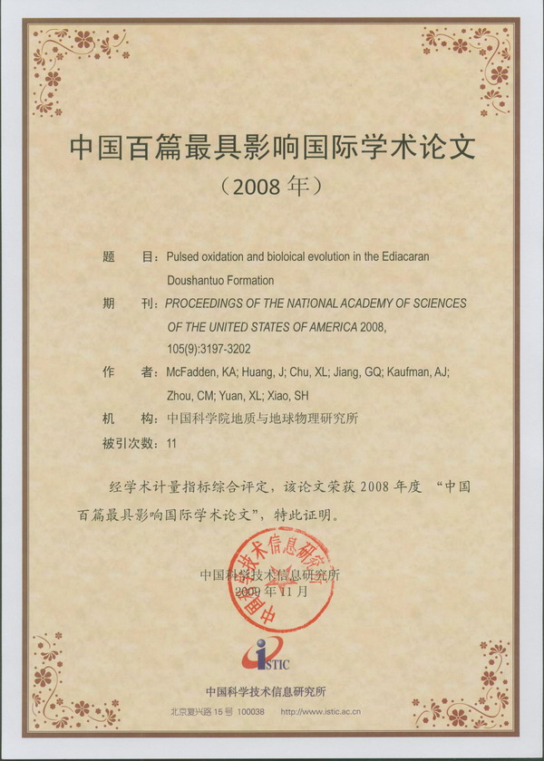 相关链接: 我所年轻博士后刘传周等在Nature发表最新成果 Pulsed oxidation and biological evolution in the Ediacaran Doushantuo Formation —— PNAS 2008年度我所发表SCI论文241篇 2008年期刊引用报告发布2008年期刊影响因子 2008年度中国科技论文统计结果发布会召开,我所在地学领域继续排名前茅 |