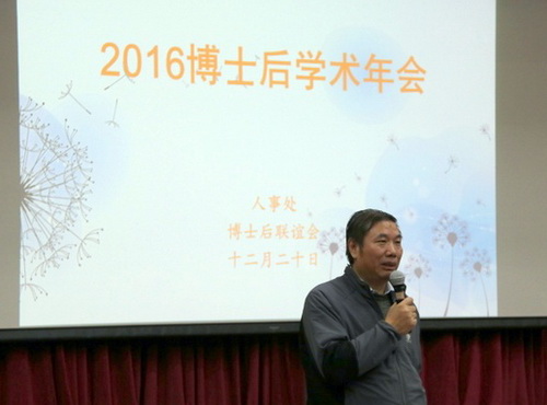 12月20日,由人事处、博士后联谊会主办的2016年博士后学术年会在地3楼报告厅举行,在所博士后近100人参加会议。9位博士后在本次年会上交流了最新研究成果,并与参会人员进行了积极的互动和探讨。