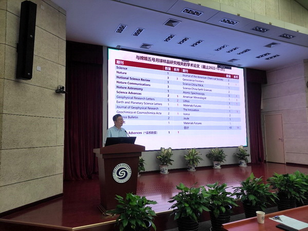 李献华院士汇报了月球样品研究团队一年来工作和成果的整体情况,并与其他嫦娥五号月球样品研究成果进行了对比,希望能通过此次学术报告会,激发新的研究思路,促进更多的成果产出,同时做好国家自然科学基金委“月球与深空探测科学研究(一)”专项项目的准备工作。
