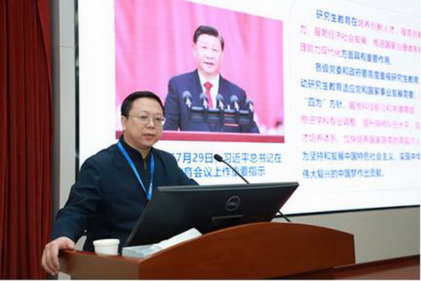 黄向阳在《构建完善学生思政工作责任体系、党建引领科教融合完善思政工作》报告中强调了大思政工作责任体系建设的重要性,要把思想政治教育融入学生培养全过程;积极开展党建引领、科教融合模式下的思政工作,围绕树立导师标杆、朋辈激励看齐、党建思政融合和营造文化环境等方面开展思政工作,明确工作机制,全面落实责任体系。