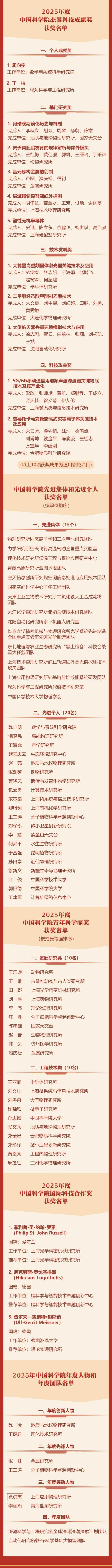 【中国科学院】中国科学院颁发2025年度系列奖项并表彰先进集体和先进个人