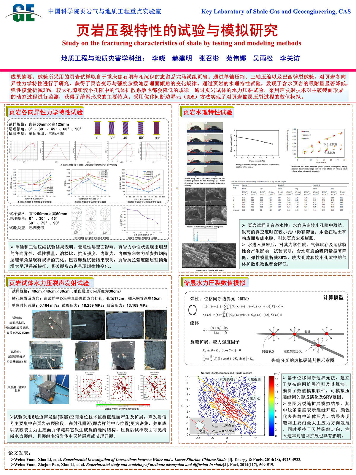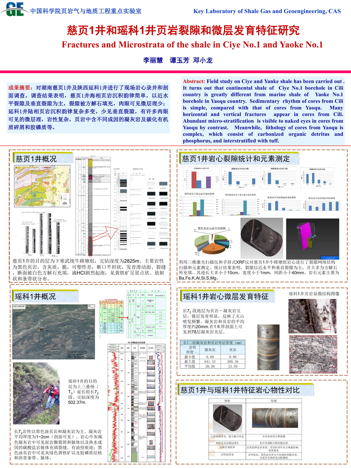 李丽慧  中国海相与陆相页岩物性研究-以慈页1井和瑶科1井为例    邓小龙  浙江吼山孤立岩柱“云石”强度及潜在地质灾害分析