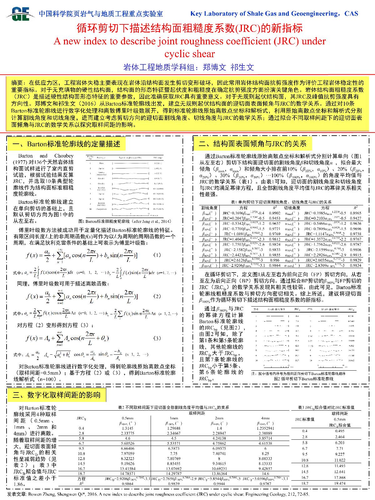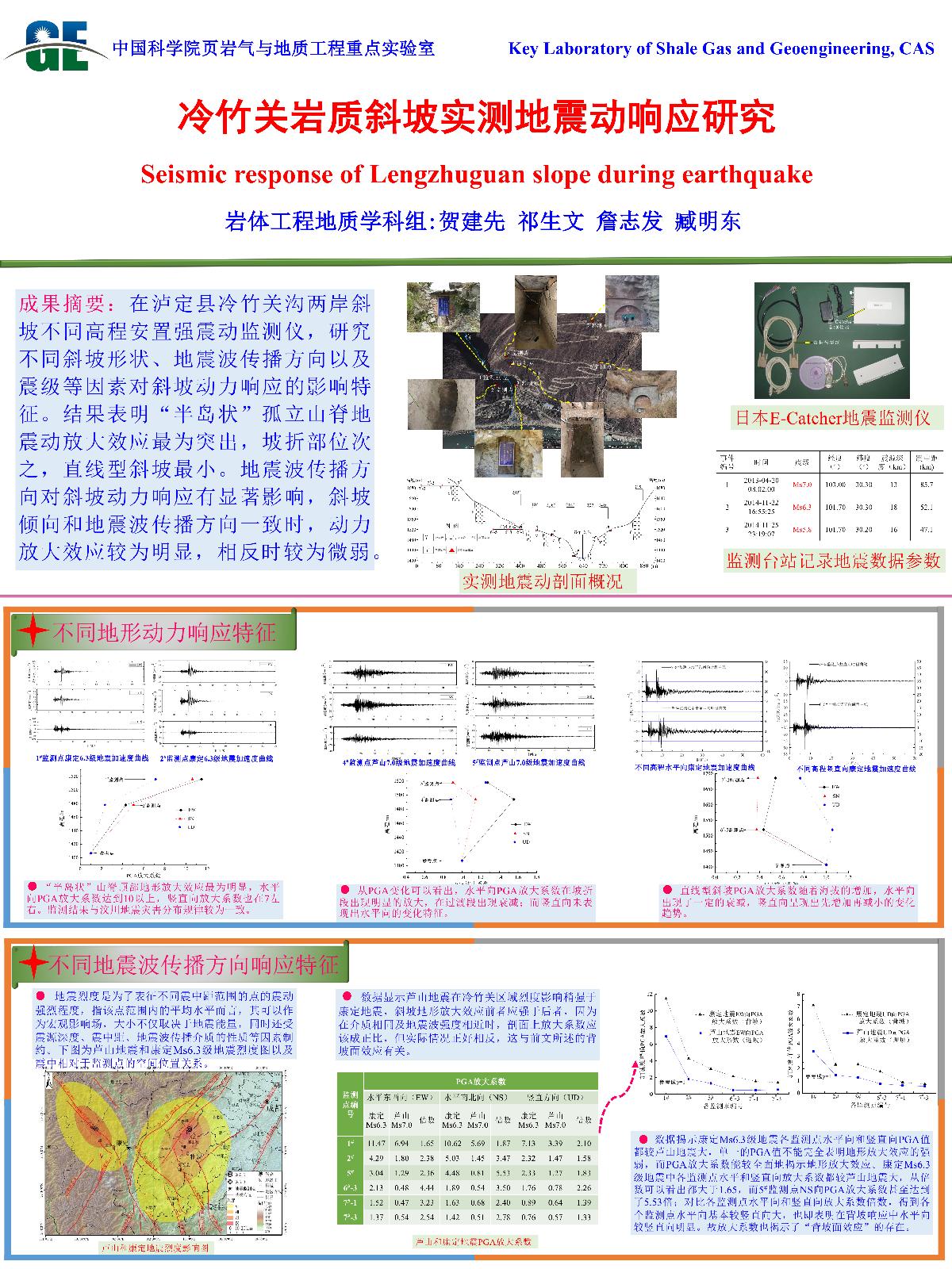 | 赫建明_页岩水力压裂试验与模拟 | 贺建先_冷竹关岩质斜坡实测地震动响应研究 | 何国丽_华阳川铀铌铅多金属矿电性结构及其成因研究 | 郭松峰_一种基于塑性应变变化的变参数强度模型 |