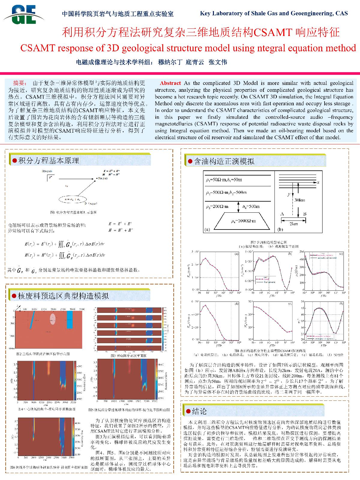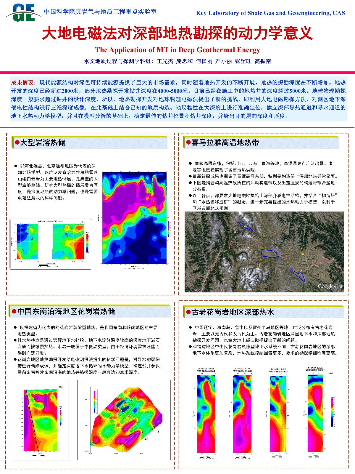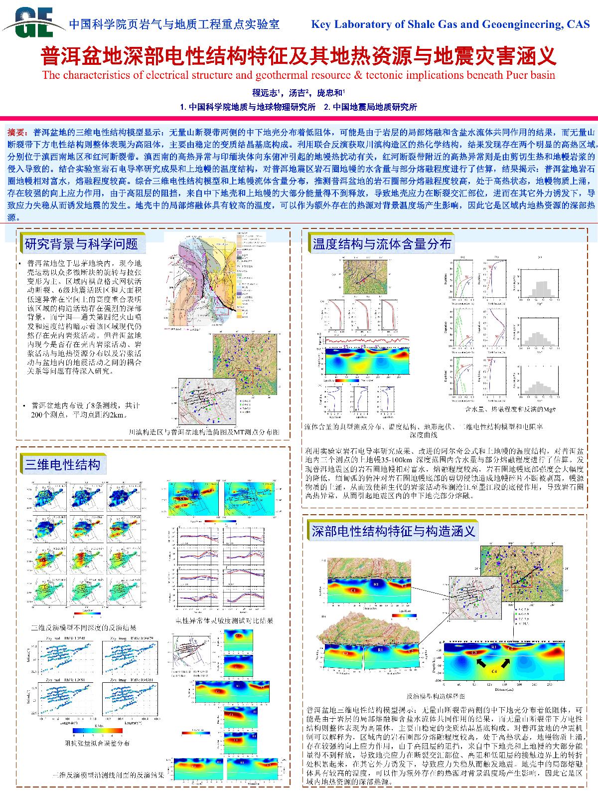 | 底青云_多通道大功率电法勘探仪(M-TEM)系统整体设计及集成优化与方法试验 | 崔振东_页岩微纳观断裂的原位观测 | 程远志_普洱盆地深部电性结构及其地热资源与地震灾害涵义 | Muhammad Hasan_巴基斯坦卡纳瓦尔地区地下水潜力的地球物理调查 |