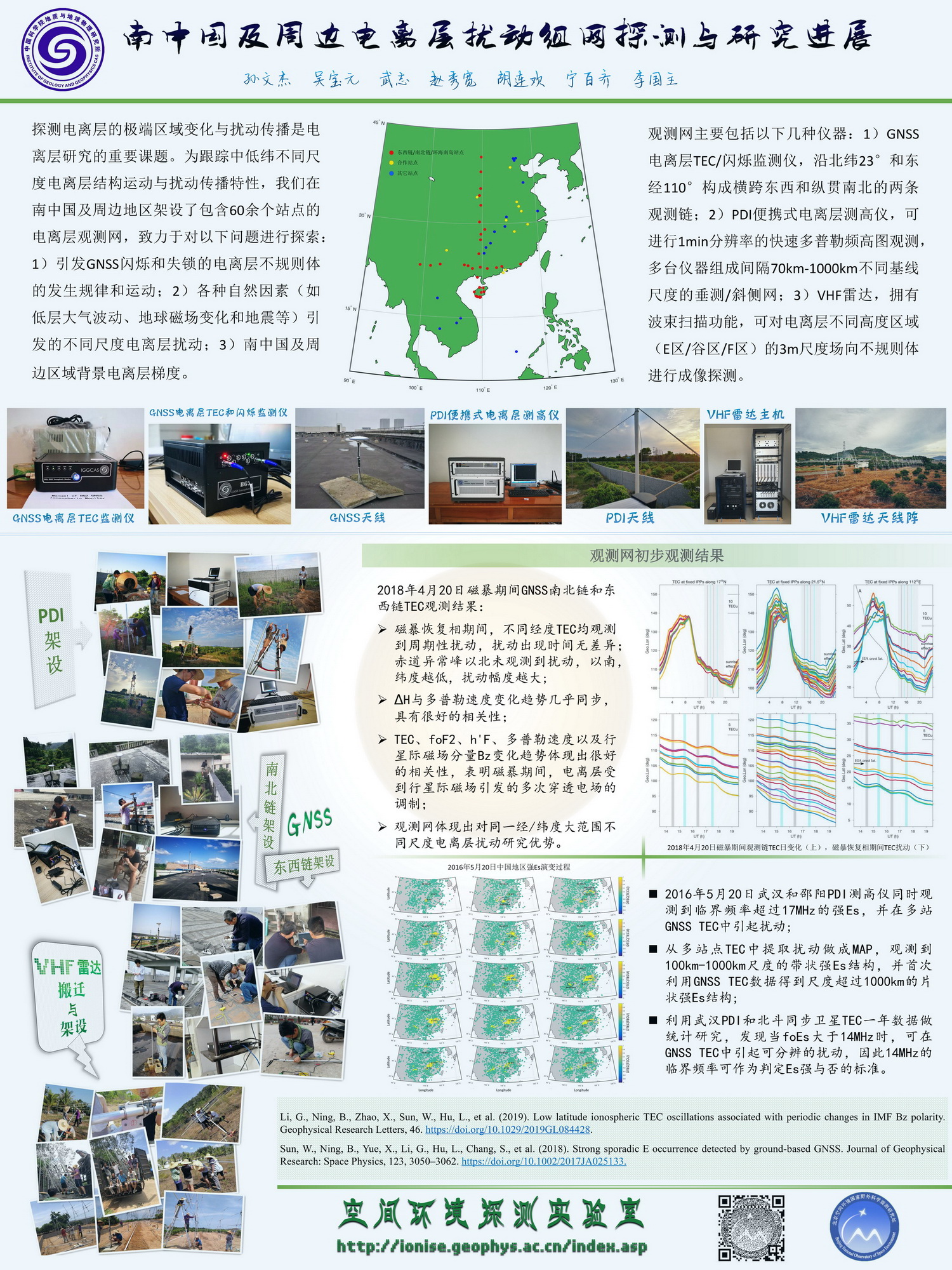 | 9-MC-ICPMS测定第四纪海底热液硫化物年代-王立胜 | 10-年轻石笋样品U-Th定年中初始钍校正研究-王学锋 | 11-流星雷达电离层不规则体探测模式开发与研究-解海永 | 12-南中国及周边电离层扰动组网探测与研究进展-孙文杰 |