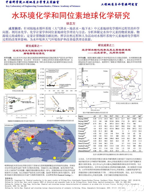 徐志方_水环境化学和同位素地球化学研究    杨主明_南岭石晶体结构测定-[Fe(AsO3)6]新构型