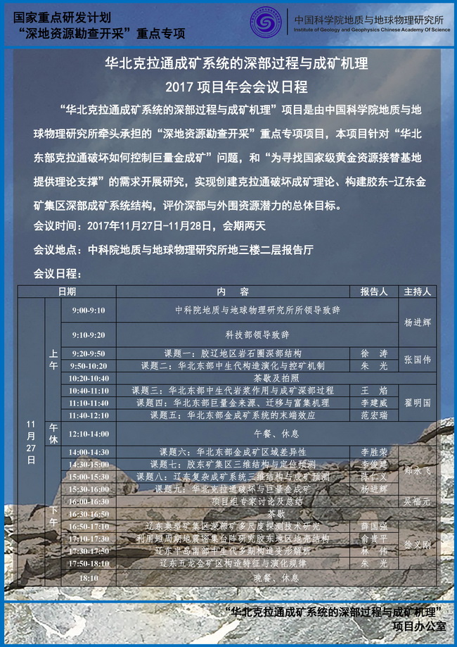 【11.27-28】“华北克拉通成矿系统的深部过程与成矿机理”2017项目年会会议