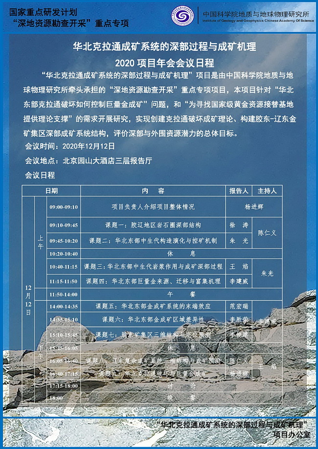 【12.12】“华北克拉通成矿系统的深部过程与成矿机理”2020项目年会会议