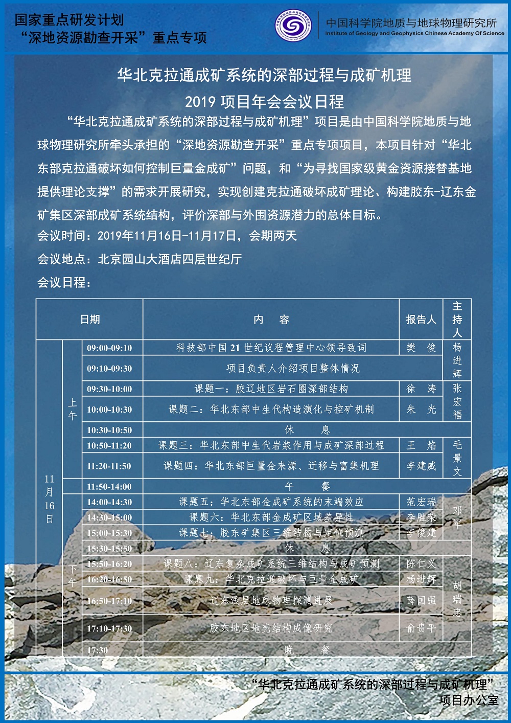 【11.16-17】“华北克拉通成矿系统的深部过程与成矿机理”2019项目年会会议