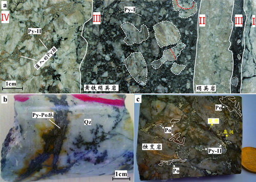 图1 笏山金矿两期矿化岩芯照片