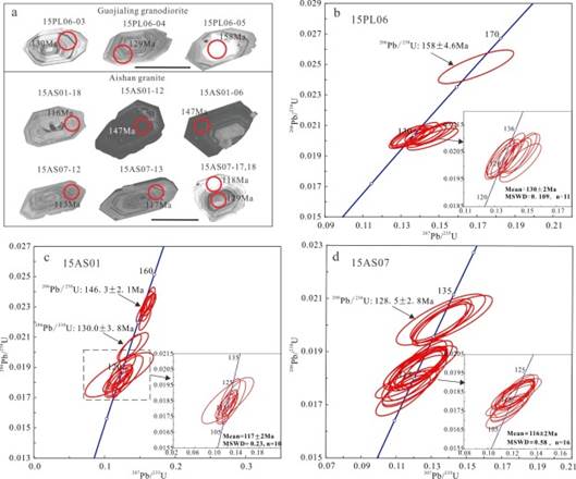 郭家岭和艾山岩体锆石LA-ICPMS U-Pb年龄图